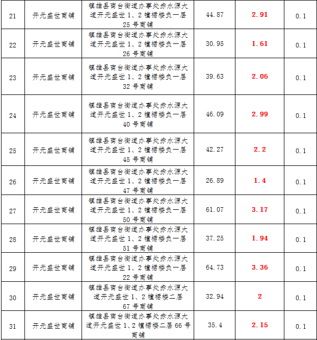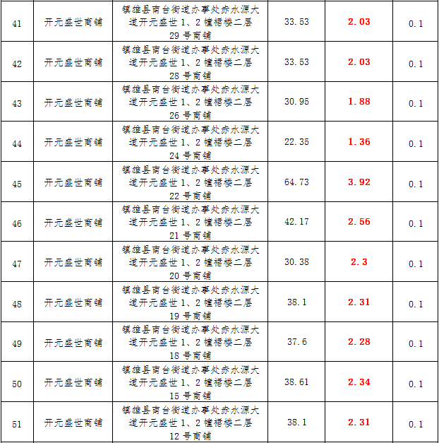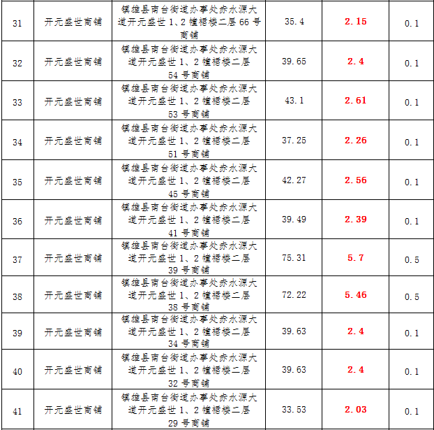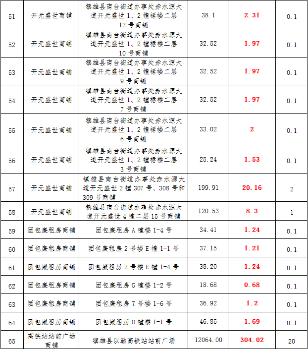 (二)拍租鎮(zhèn)雄縣城鄉(xiāng)建設(shè)投資有限公司國(guó)有門(mén)面3年期使用權(quán),詳見(jiàn)下表: